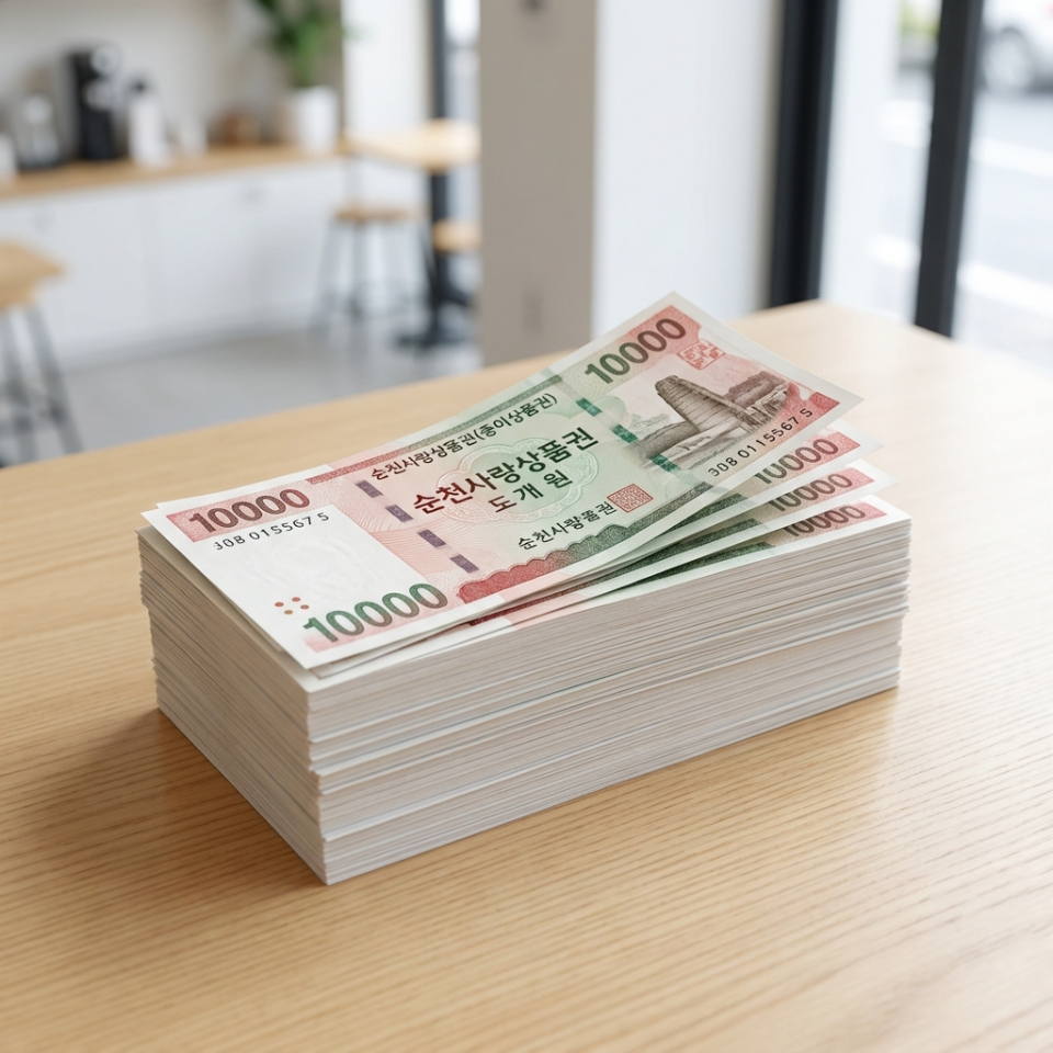 지원금은 현금이 아닌 지역 화폐(순천사랑상품권) 형태로 지급됩니다.